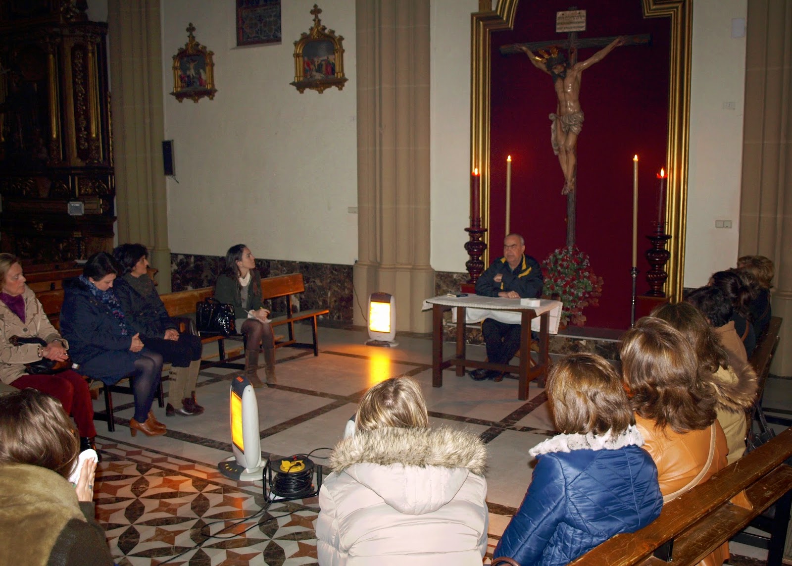 Con la iglesia en penumbra, al finalizar la tarde, comenzaba el viernes 16 de enero, el I Encuentro de Hermanas del Cristo del Amor. Un momento de serenidad y recogimiento en el que pudimos compartir juntos lo que más nos une, el Amor de Cristo.